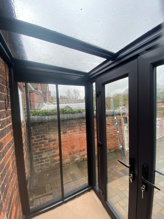 Upvc conservatory with glass roof .